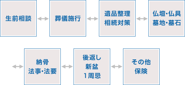 葬儀後のご遺族の気持ちや意向を含め、真心を込めてお手伝いさせていただきます。ご予算に応じ厳選した仏壇・仏具・位牌・墓地・墓石をご提案致します。